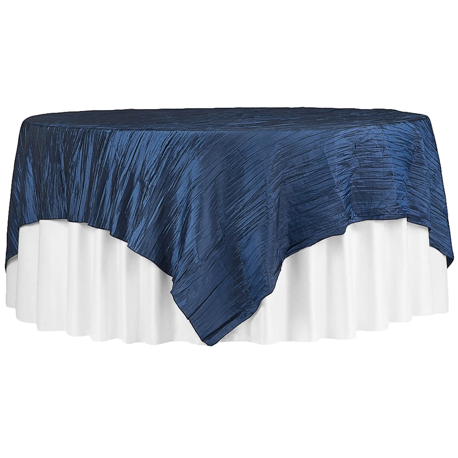 Accordion Crushed Taffeta - 85"x85" Square Table Topper/Overlay – Navy Blue