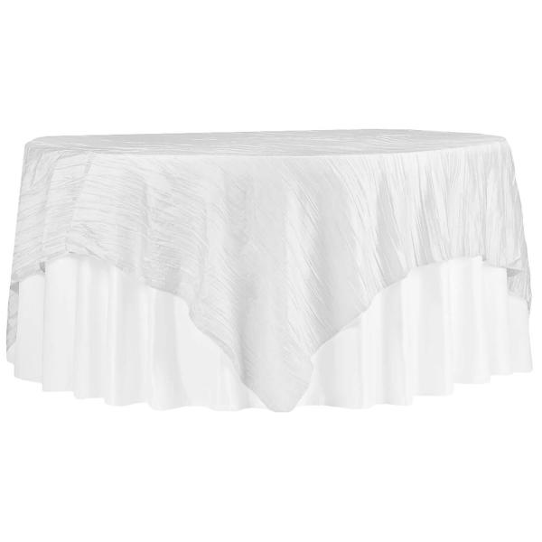Accordion Crushed Taffeta - 85"x85" Square Table Topper/Overlay - White