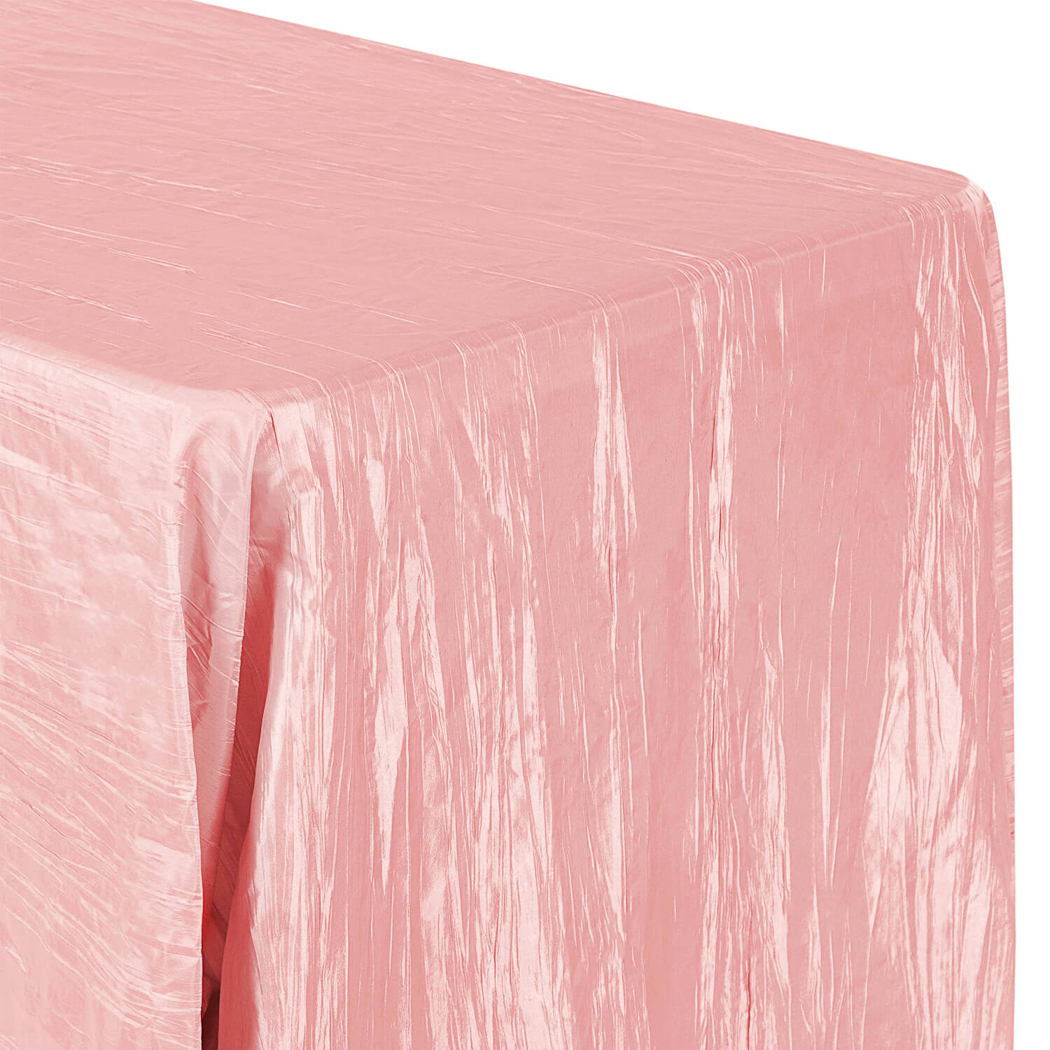 The texture of crushed taffeta paired with the simple weave, drape, and quality of the fabric has long made taffeta a favorite for gowns, curtains, and tablecloths. The soft, dusty pink color of these tablecloths provides a beautiful backdrop for your tableware and centerpieces, while grounding your color scheme.
