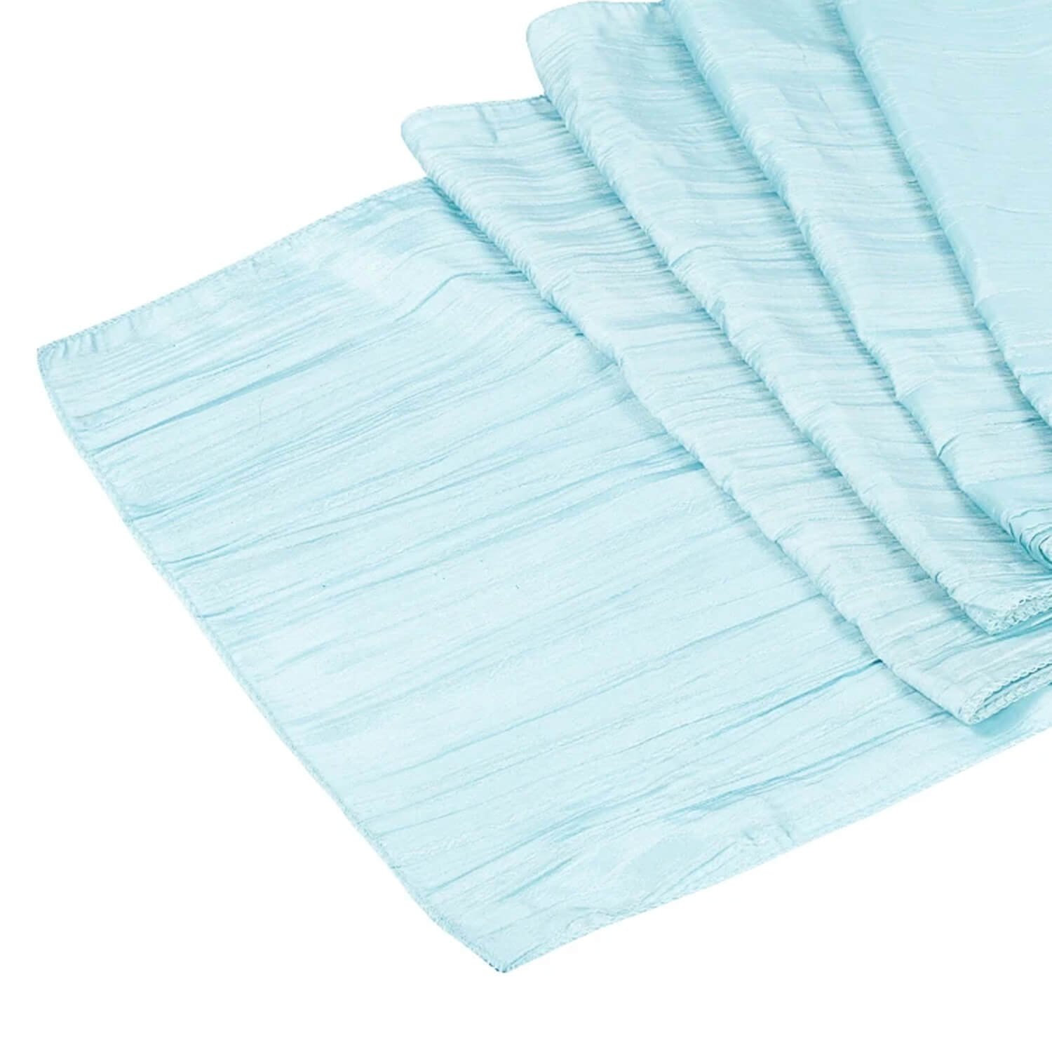 Pair these runners with our other accordion crushed taffeta items including; tablecloths, overlays, bows, sashes, and more.