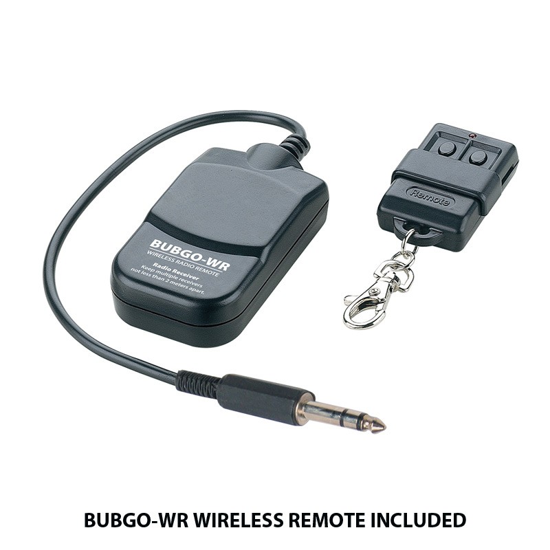• Portable high output bubble machine • Creates hundreds of bubbles per minute • Durable plastic casing with EZ-Access front fluid tank • 1 Liter Fluid Tank • Large high velocity fan makes bubbles rise quickly in the air • ON/OFF switch on rear of unit • ON/OFF Wireless remote controller BUBGO-WR included • Carrying handle • Most types of bubble liquid acceptable • Power Consumption: 17W • Fluid Consumption Rate: 1 Liter every 50 Mins • Battery life indicator with charge indicator • Battery Charge Time: 6 Hours (Per Cycle) • Battery Life: 5 Hours (Full On) • (Charger): DC12V 1000mA • Dimensions (LxWxH): 13.75” x 7” x 8.25” / 352 x 176 x 209mm • Weight: 4 lbs. / 2kg.
