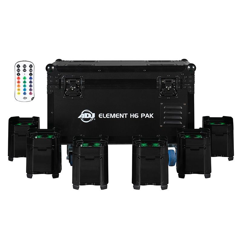 This lighting system, for instance, is made with the highest quality materials unlike those flimsy ones the market is flooded with. Durable enough to withstand the rigors of prolonged use and easy enough to use whether you're a novice event planner or bonafide technician. Ideal for installation or production applications with its 6 IP54-Rated battery powered black fixtures, durable flight case with on-board battery charging solution, wireless DMX, and UCIR24 wireless remote. What's more? The ADJ Lighting Element H6 Pak boasts four 20-watt RGBAW+UV LEDs with a life expectancy rated at 50,000 hours. It also offers a range of easy-to-use features such as a built-in kickstand to angle the fixture when placed on the floor, a 4-touch button OLED display inside cover panel, and a battery charge indicator on each fixture.The value will trump the cost many times over. A must for all kits. Elevate your lighting experience today! Suitable for indoor and temporary outdoor use.