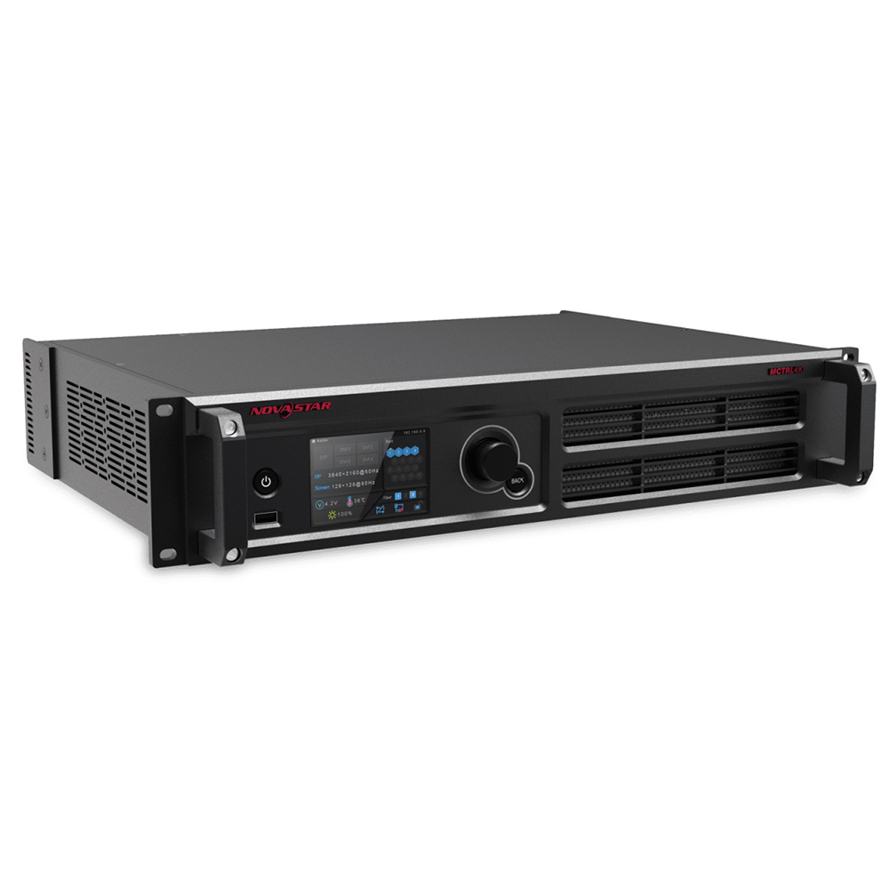 Complete video input interfaces: DP1.2 x 1, HDMI2.0 x 1, dual-link DVI x 2. Supports 16-channel Neutrik Gigabit Ethernet outputs and 4-channel optical fiber outputs and maximum loading capacity of a single unit up to 3840x2160@60Hz. Supports two operating modes during dual-link DVI input: mosaic and multi-card. Innovative design to enable smart configuration which has greatly shortened the time for stage preparation. NovaStar's G4 engine to create stable and flicker-free pictures without scanning lines, and bring smooth images with a good sense of layering. Supports NovaStar's latest pixel-by-pixel calibration technology, the process of which is fast and efficient. Enables white balance calibration and color gamut mapping based on the different features of LEDs on the display to ensure the real restoration of color. Screen configuration can be done at any time without PC. Manual adjustment of screen brightness, which makes it much easier and quicker. Multiple controllers are able to be cascaded for uniform control.