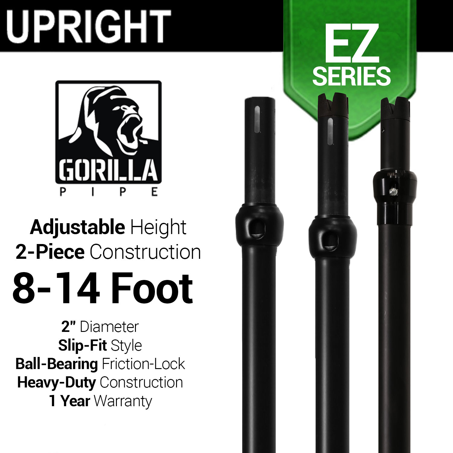 Black Anodized EZ Series - 2-Piece Adjustable Upright w/Slip-Lock (8ft-14ft)[EDD-B256DSBKA]