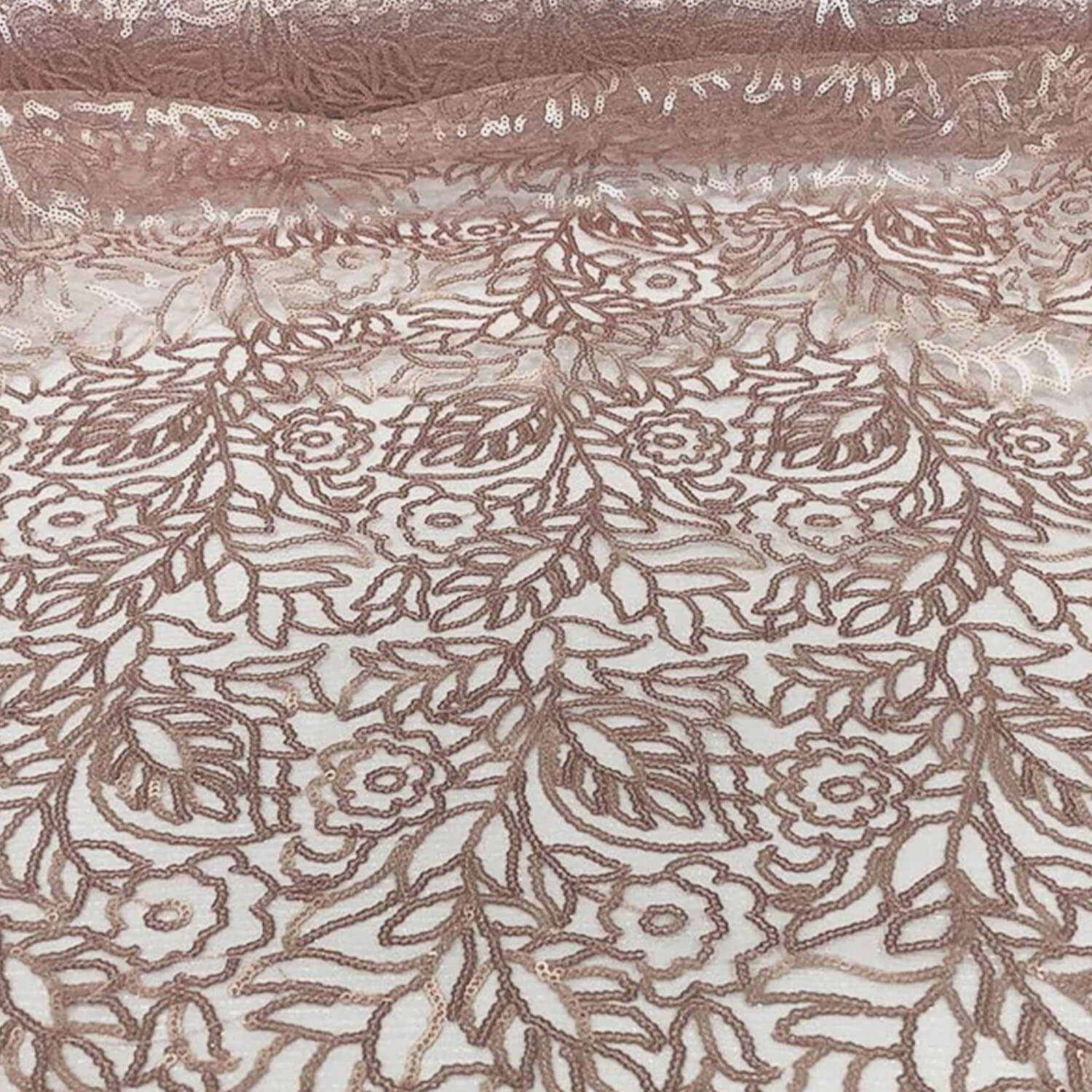 Create an elegant table top decoration by using our blush fancy leaf sequin overlay. This blush fancy leaf sequin overlay is filled with embroidered flowers and leaves on a polyester sheer fabric and decorated with delicately placed sequins. Our many size options for this blush fancy leaf sequin overlay allow you to choose the right one for you.