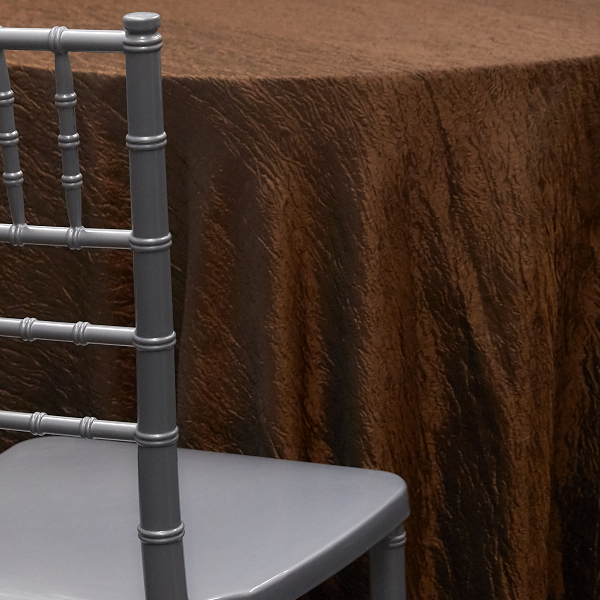 This bronze crushed taffeta tablecloth creates a stunning addition to your event space. Our bronze crushed taffeta is a quality linen that we create our tablecloths out of. With many size options and the ease of taking care of it, you will be sure to find the right bronze crushed taffeta tablecloth for you.