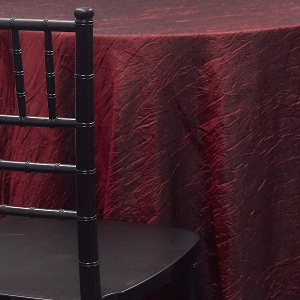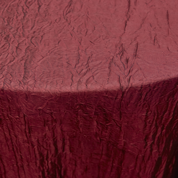 This burgundy crushed taffeta tablecloth creates an elegant look to your table decor. Our burgundy crushed taffeta is a quality linen that we create our tablecloths out of. With many size options and the ease of taking care of it, you will be sure to find the right burgundy crushed taffeta tablecloth for you.