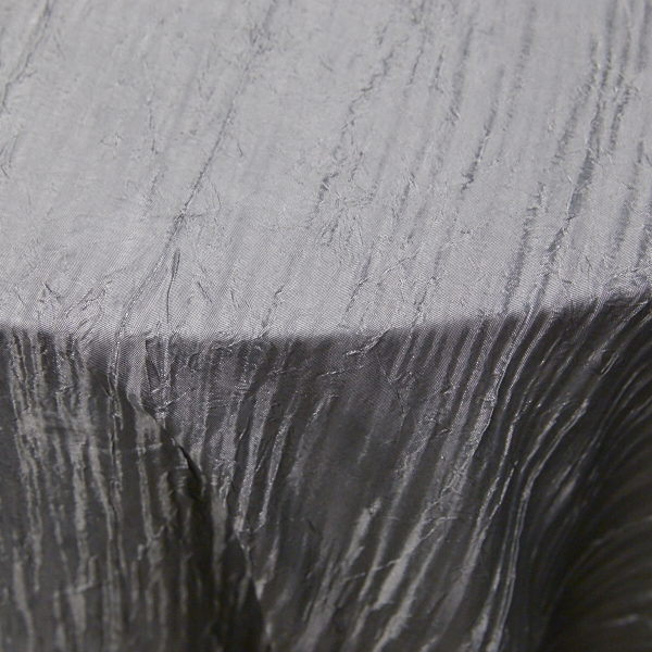 This charcoal crushed taffeta tablecloth is perfect for creating a picture of class and sophistication at any event. Our charcoal crushed taffeta is a quality linen that we create our tablecloths out of. With many size options and the ease of taking care of it, you will be sure to find the right charcoal crushed taffeta tablecloth for you.