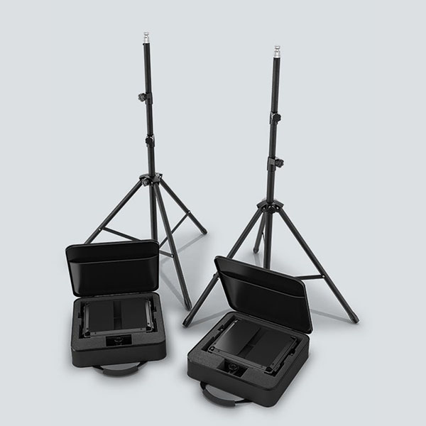 Create the perfect lighting for your studio with the Cast Panel Pack. This complete lighting solution set up includes 2 light fixtures with tripods, power supply, and carry bags.