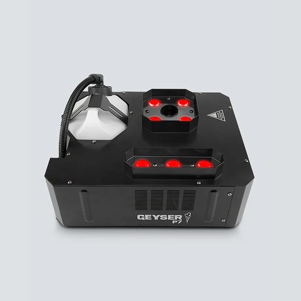 Create ethereal, and fantastic, effects with the combination of fog and well placed light bursts. That combination produces an almost pyrotechnic effect (think fire and flames without the danger) without the use of toxic chemicals or heavy CO2 canisters. The Geyser P7 lights up bursts of water with 7 different 9-watt penta-color (RGBA+UV) LEDs for fantastic color mixing capabilities. Two LED zones let you create a two toned burst of fog. The unit allows you to assign different colors to each of the included remote buttons and the manual button. Control the unit from the onboard DMX, wireless remote (included) Mix this effect in with other light elements, fog machines, bubbles, or snow for a wild look guests won’t soon forget.