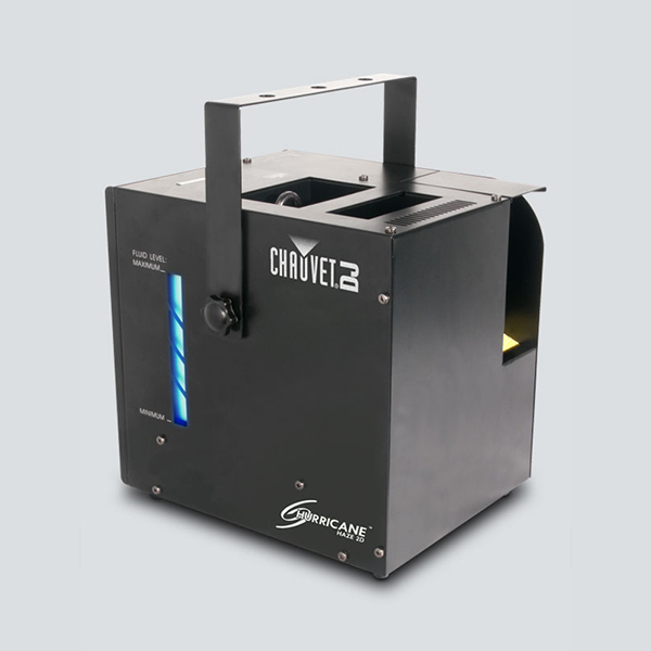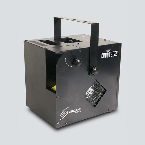 Add another element to your effects with the CHAUVET Haze machine. Another water-based machine, the Haze 2D creates a very ethereal look when combined with fog, device, and/or snow effects. This unit is equipped with an adjustable blower output speeds, a nozzle, and a low fluid indicator. An included wired timer remote stores conveniently in the fixture.