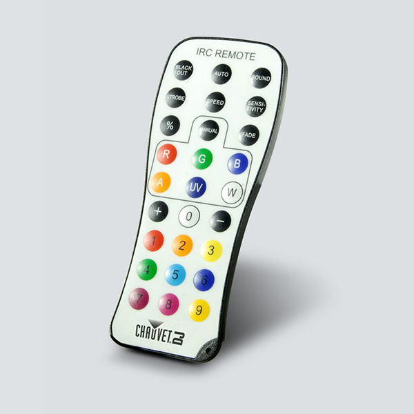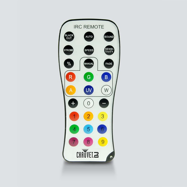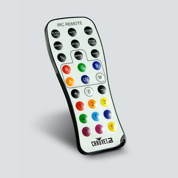 Easily control your pre-set light elements with this wireless, infrared IRC-6 remote. With 30 feet of range, users can pre-program light scenes and color mixing options for fast implementation and on-the-fly speed adjustments. The remote is compact and light weight making it easy to store and transport.