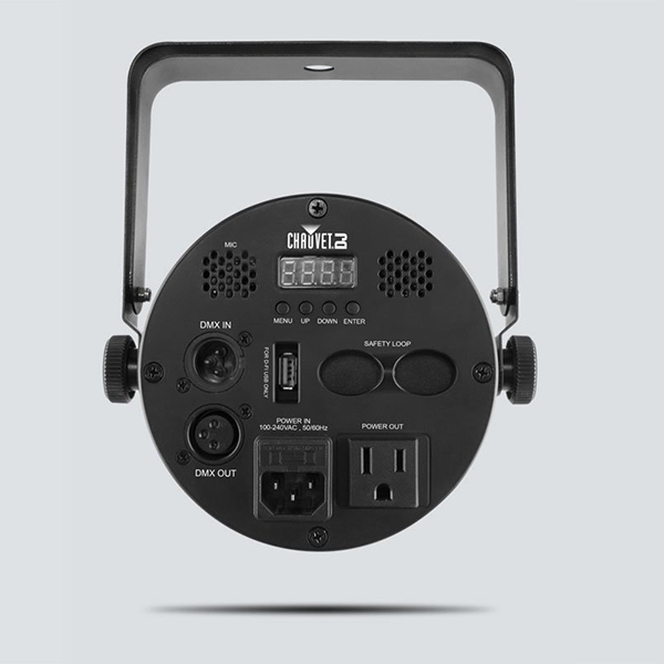 SlimPAR T6 USB has multiple user-configurable settings, and built-in automated programs are easily accessed via the IRC-6 remote, DMX or master/slave. Multiple units can be power linked. The CHS-30 VIP Gear Bag is recommended for transport.