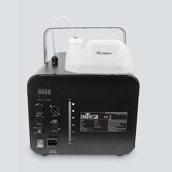 Add wonder and enchantment to your events with the CHAUVET Snow Machine. This unit provides high output while remaining user friendly. It is equipped with an onboard wired timer, built-in DMX, an easy to read digital display, and simple volume adjustment with a Hi/Low blower switch to adjust for far and near distances. This unit works with a water based fluid (sold separately) so your “snow” will be non-toxic and environmentally safe.