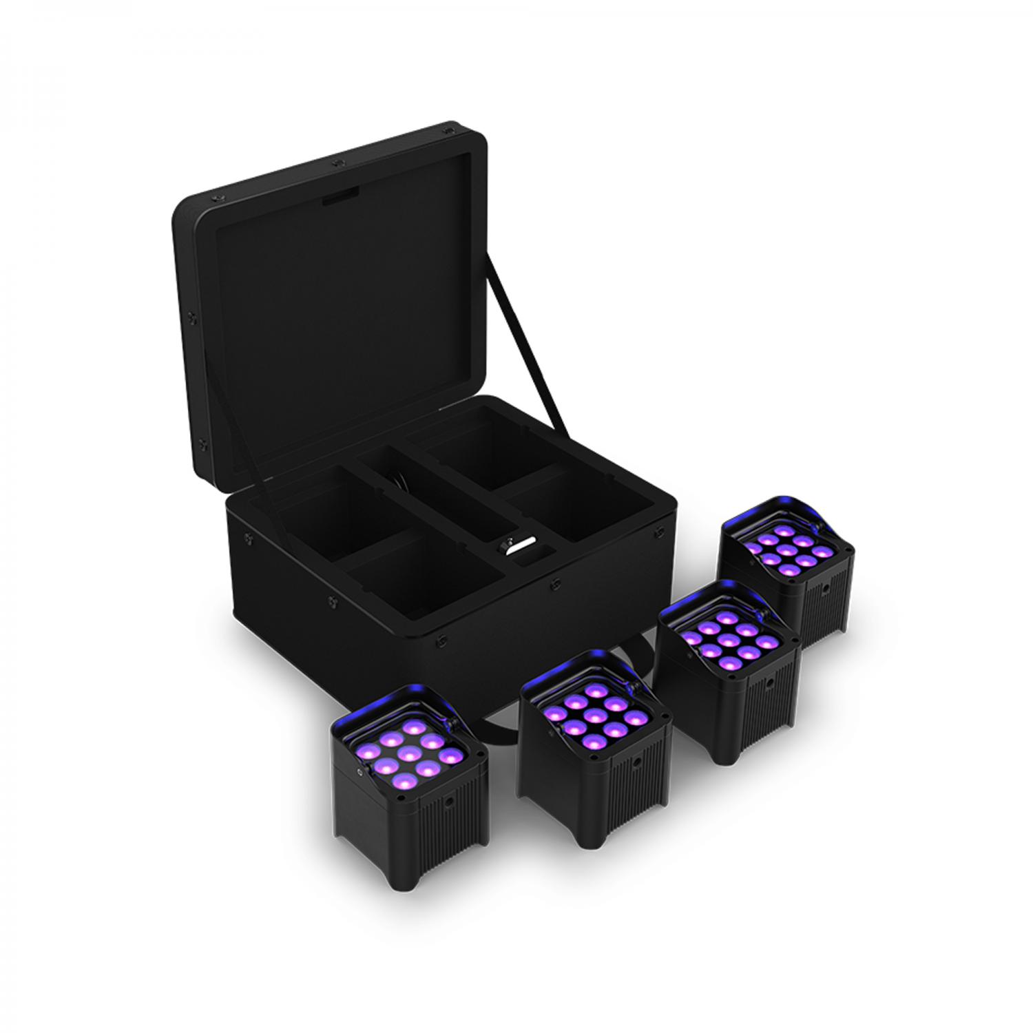 Freedom Par H9 IP X 4 is a complete up-lighting kit. Control the lights using the included RFC remote that does not require line of sight and the multi-charger saves space when charging multiple fixtures simultaneously.