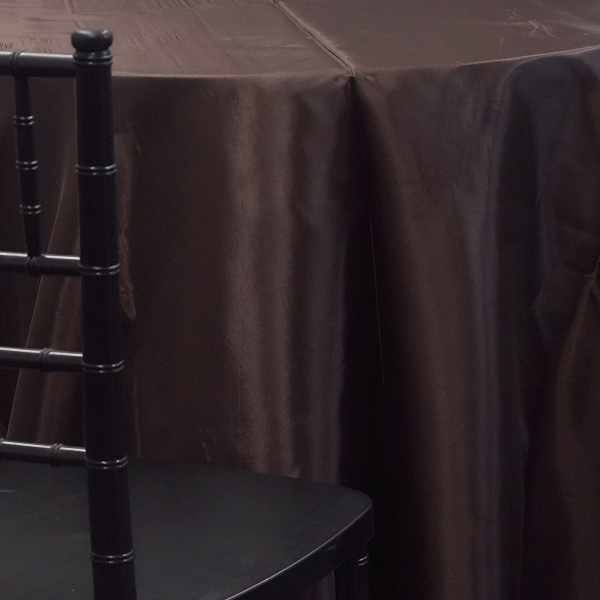 Create an elegant tablecloth covering for your table with our chocolate brown taffeta tablecloth. Our chocolate brown taffeta tablecloth is a great economical substitute for a satin tablecloth. The taffeta fabric feels and looks amazing on any table and has a smooth texture. We offer many size options for our chocolate brown taffeta tablecloth.