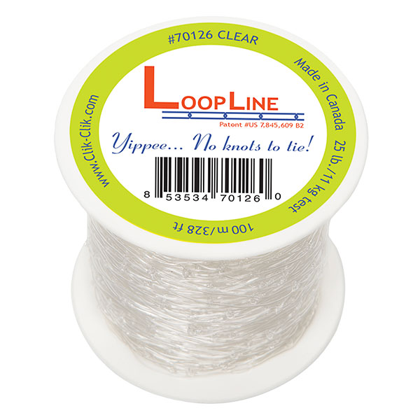 With our clear Clik Clik LoopLine, worrying about tying knots in the right place becomes a fear of the past. LoopLine is a continuous clear strand with connected 2-inch loops the entire way. Instead of tying knots to hang signs, backdrops, or ceiling drapes, simply cut your clear LoopLine to equal lengths and use a cow hitch to secure the LoopLine to the object. It’s so easy to use and you can even reuse it for the next display!