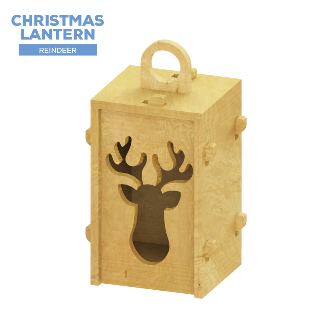 Collapsible Wood Lantern - Reindeer[WOOD-LANT-DEER]