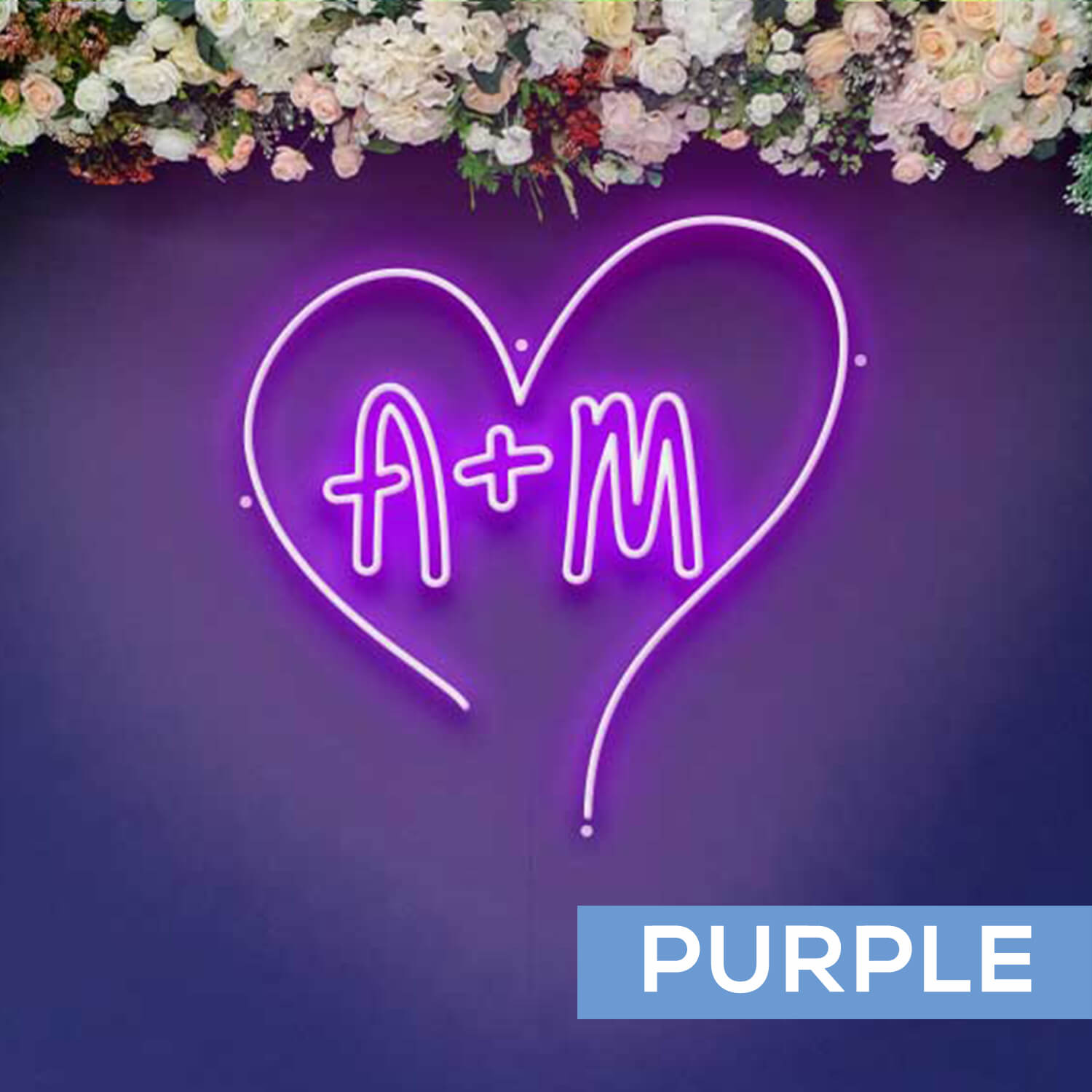 Custom Neon Sign Your Initials in Monogram Heart - Choose your Size and Color![NS-CS-MONOHRT]