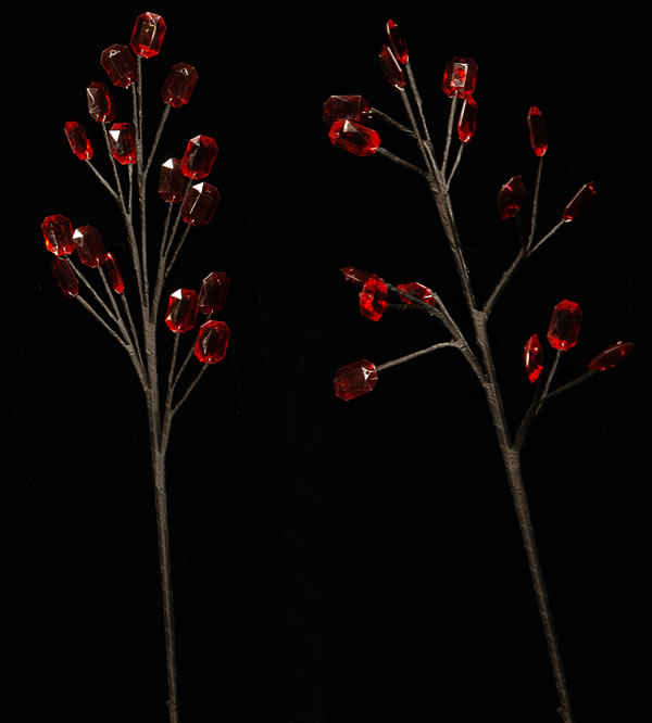These beautiful red beaded branches will make your decorations stand out with beauty and elegance. While these are perfect for your centerpiece creations, they can also be used with many different decor ideas. Each branch is studded with several red beads cut in a gorgeous crystal style.