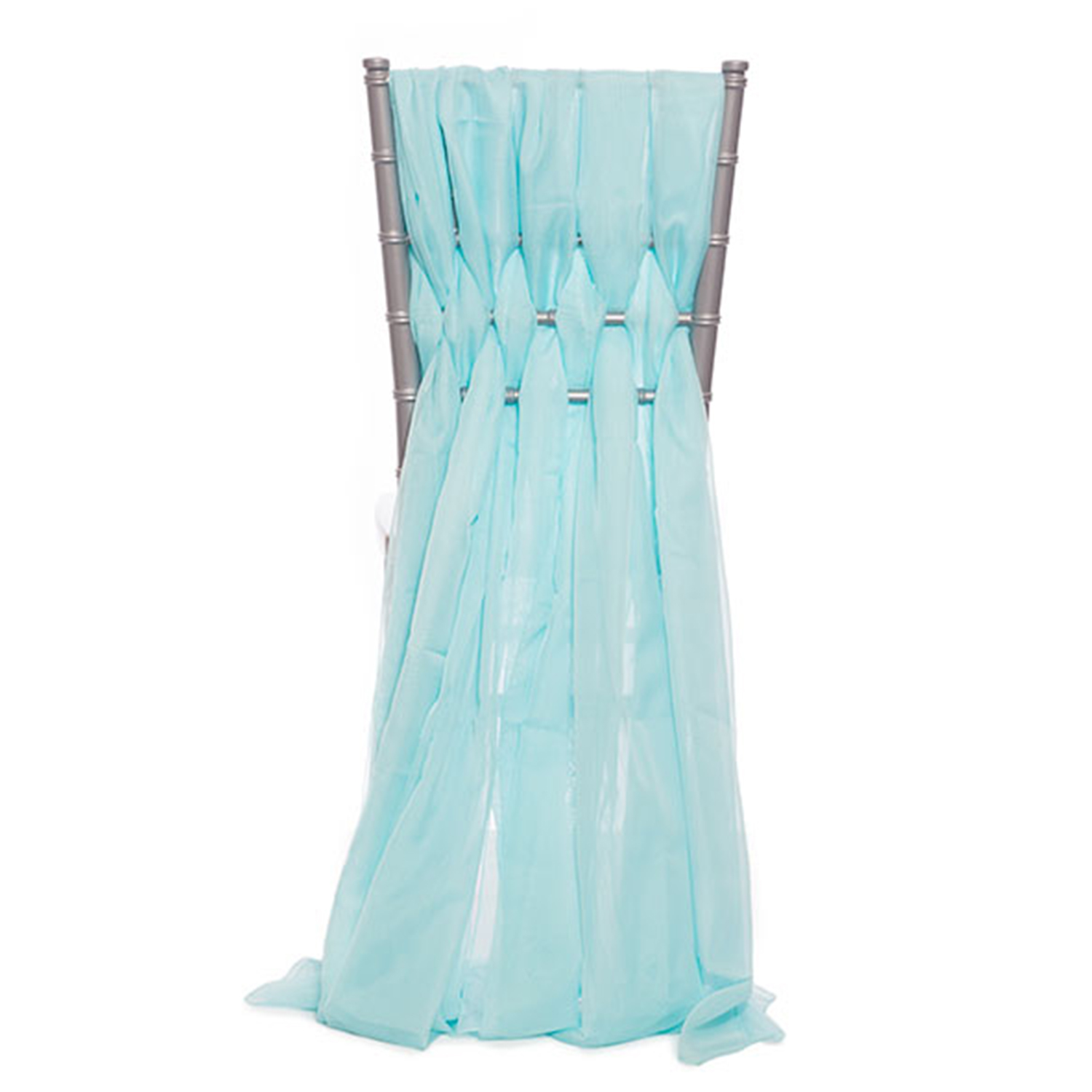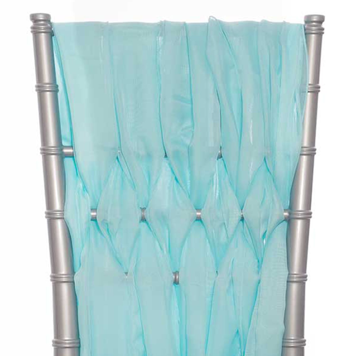 Our 15 inch x 84 inch Sheer 5 Piece Chiavari Chair Accents are completely customizable and made here in the USA.