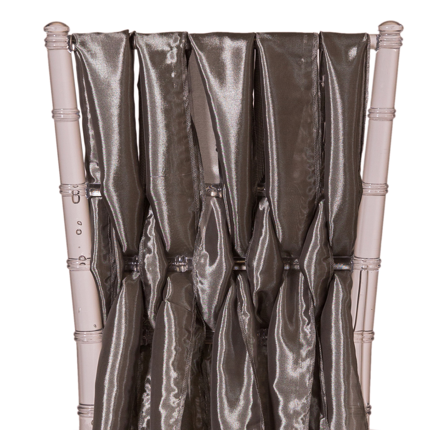 Our 15 inch x 84 inch Taffeta 5 Piece Chiavari Chair Accents are completely customizable and made here in the USA.