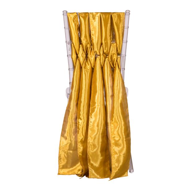 Our 15 inch x 84 inch Taffeta 5 Piece Chiavari Chair Accents are completely customizable and made here in the USA.