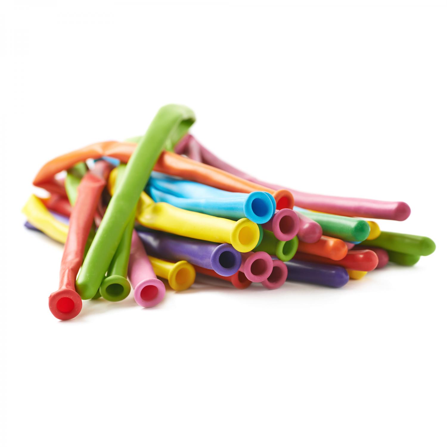 Liven up the air and the mood with these ultra-resistant twisting balloons. Whether indoors or outdoors, celebrating a bar mitzvah or an anniversary, twisting them into animals or flowers, they are just the fun additions that the joyous occasion needs. The assorted colors suit so many different palettes and themes. And their twistability makes them especially perfect for children's birthday parties.