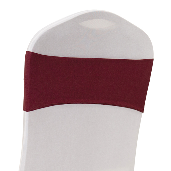 Our 5” burgundy wide spandex chair band will take your plain chairs from boring to beautiful. You can use our burgundy chair bands on almost any chair and they fit with any theme. Whether you are decorating for a party, wedding, banquet, or other special events, our burgundy spandex chair bands give you lots of decorating choices.