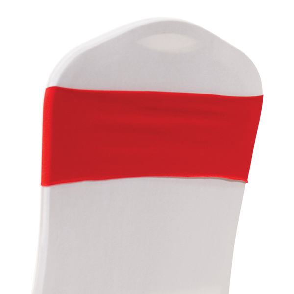 Our 5” red wide spandex chair band gives your decorations a bold look. You can use our red chair bands on almost any chair and they fit with any theme. Whether you are decorating for a banquet, party, wedding, or other special events, our red spandex chair bands give you lots of decorating alternatives.