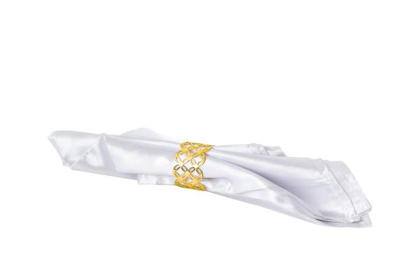 This delicate ring of interlocking flower shapes is functional yet elegant adding a bit of sophistication to your table. The classic golden tone works well with most traditional color schemes and patterns.