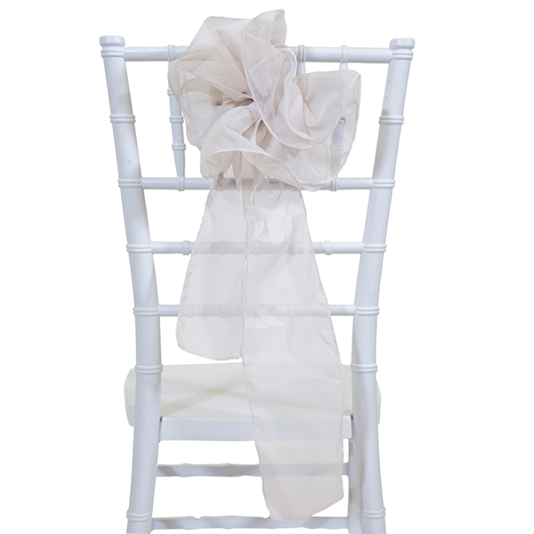 Our 9” white sand sheer flower chair accent gives your guests a relaxing moment. These white sand sheer flowers are high-quality, durable, and look stylish on any chair back. The bunched design is pleasing with two flowing sheer ribbons from the base. You can also add a buckle or brooch to this black sand flower.