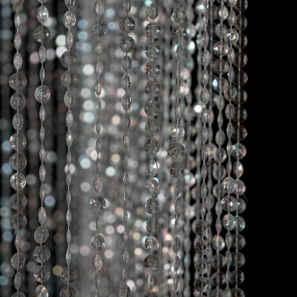 This 9ft crystal column is perfect for any event. The delicate crystal beads will glitter and shine under your uplighting. Each 9ft strand hangs from a chrome ring which includes holes for easy hanging. You can use anything from fishing line, zip-ties, C-hooks and more to hang. If you don’t need all 9ft, use scissors to cut the strands or puddle it at the bottom.