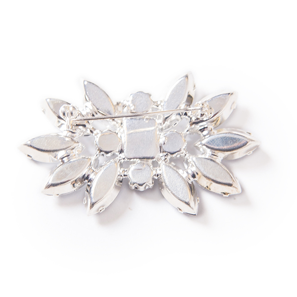 Our diamond star-burst brooch gives your event a touch of starlight that will make your event explode with beauty. The acrylic brooch is a symmetrical silver piece with five diamond points on each end. You can create lots of different designs on napkins, curtains, chair covers, curtains, and more with the metal pin backing.