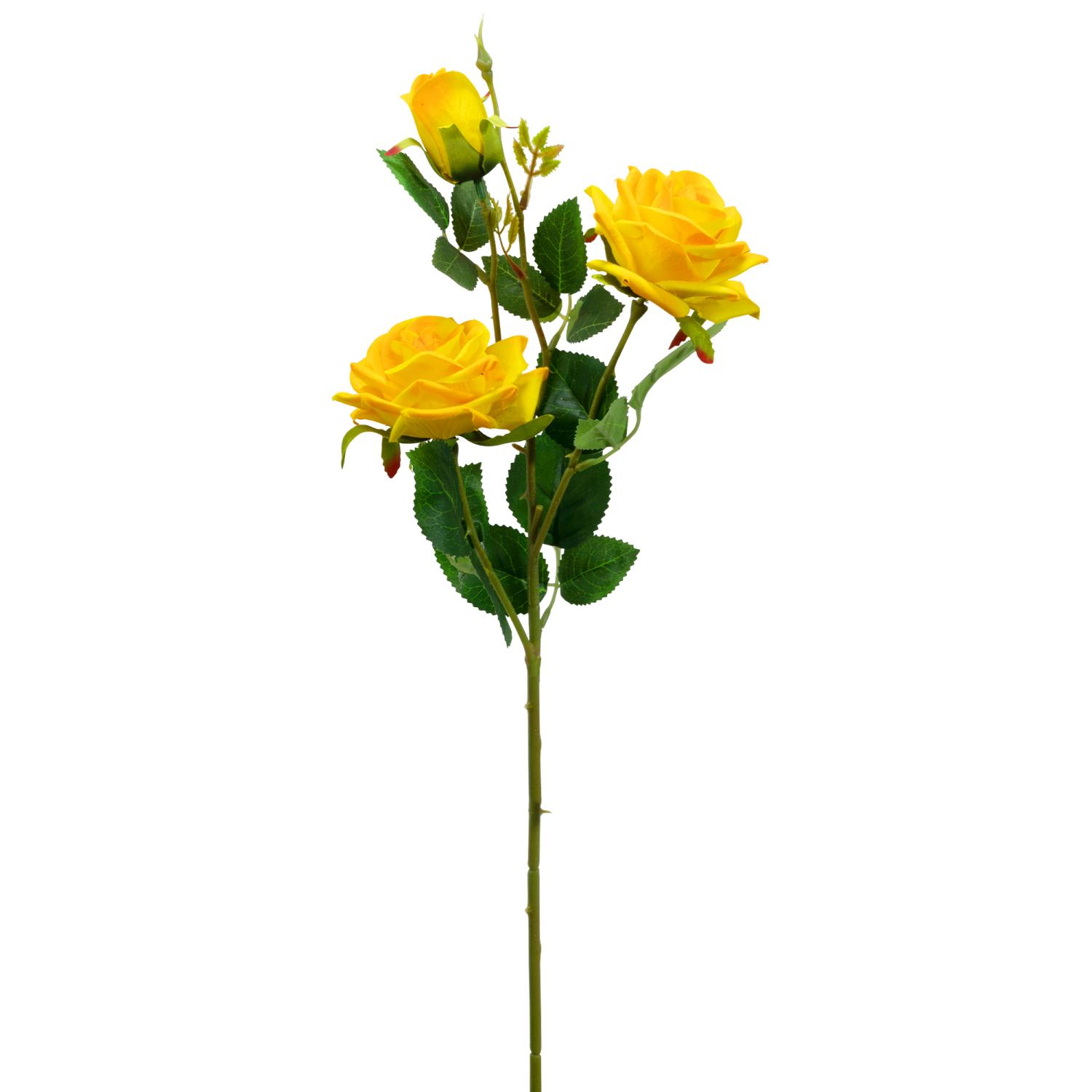 Decostar™ Artificial 3 Head Rose Stem 25" - Yellow[PFO-25-0815YE]