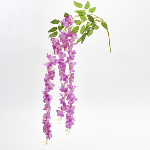 Cascading flowers bring an air of romance to your décor. These 43” hydrangea branches, with their dangling lavender flower blossoms, are soft and light. Fill vases with larger flowers, then surround them with these branches – tumbling over the edges of the vase for an enchanting and romantic look. Add to floral bouquets for wedding and anniversary events, or use in draped fabric, on arches, or even in wall coverings for a beautiful effect.