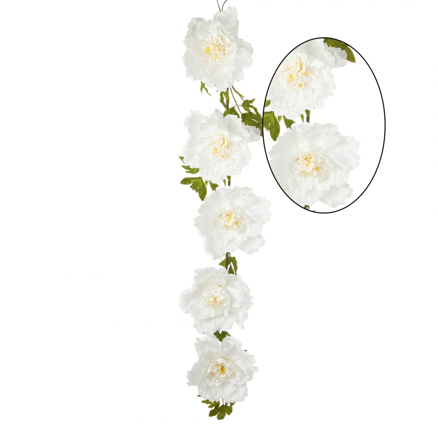 Artificial Peony Cane Garland 74" - White