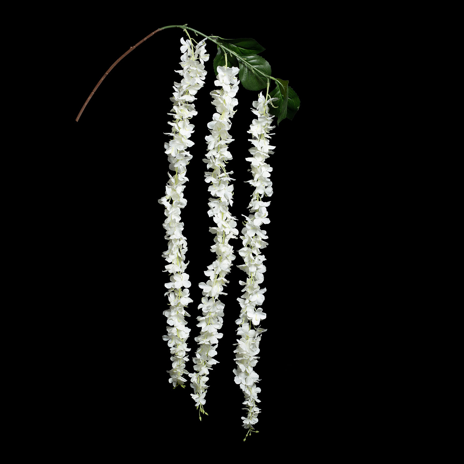 Three strands of plumeria flowers, clustered along the entire length, each attach to the main branch on this plumeria spray. Looking like a spring tree in full bloom, these branches make fantastic additions to larger floral displays providing a fairytale quality to your decor. With a weeping, cascading look, they add dimension and movement to the entire piece.