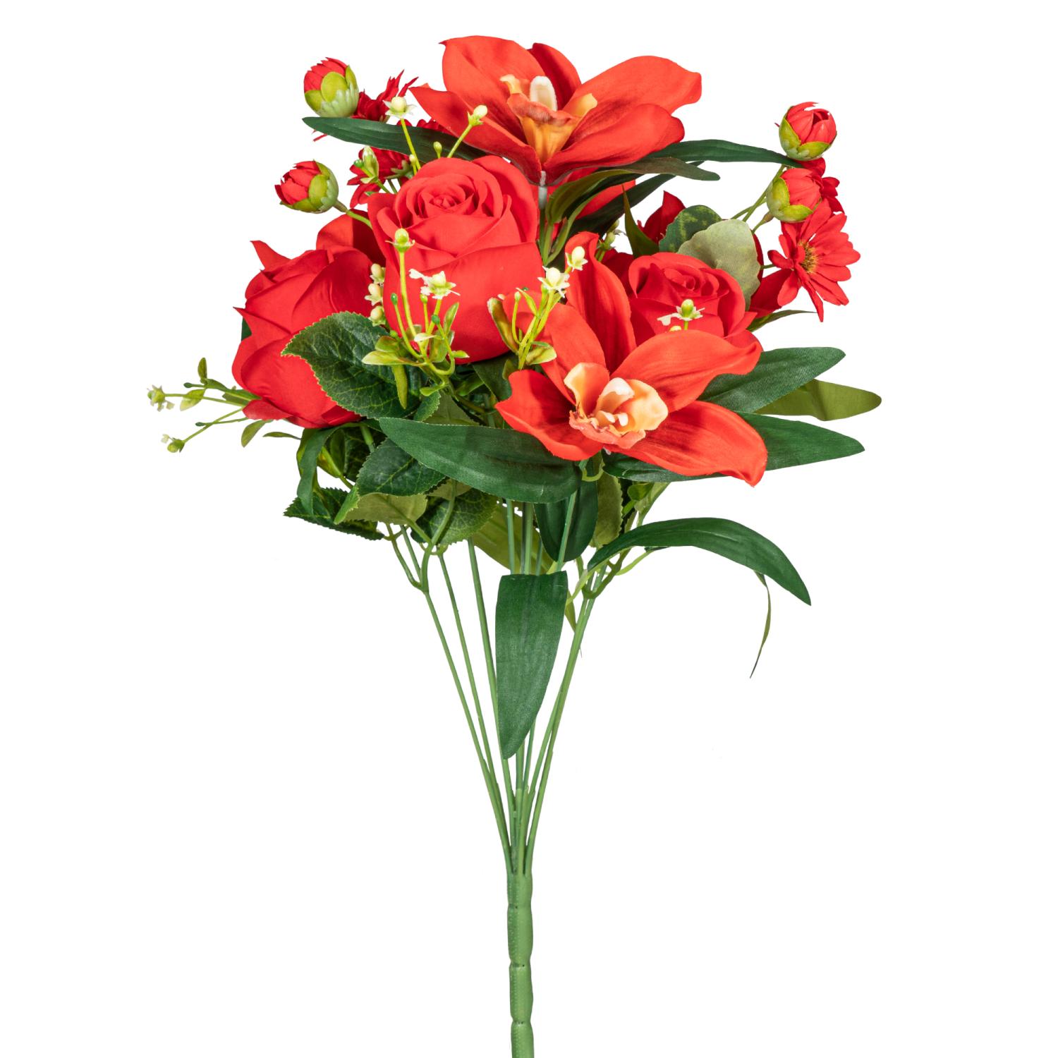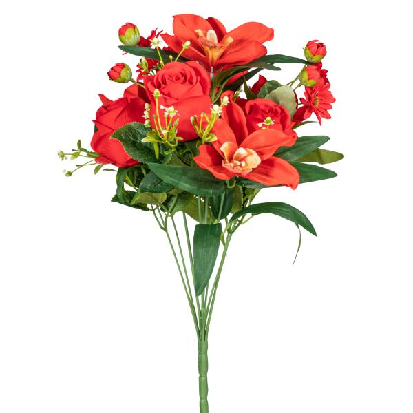 Decostar™ Artificial Rose And Orchid Bouquet - Red[PFO-25-0751RD]