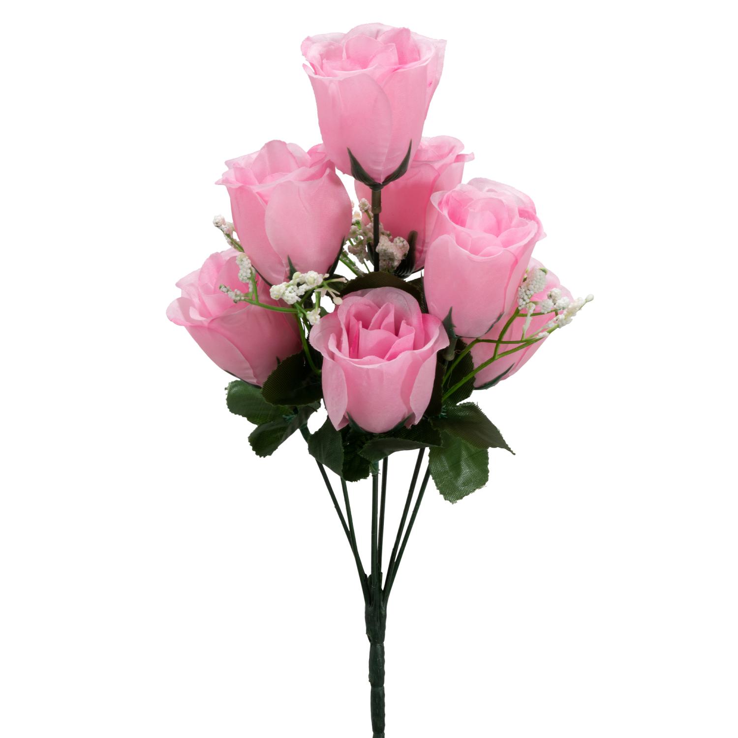 Decostar™ Artificial Rose Bud Bush 12" - Dozen - Pink[PFO-25-0758PK]