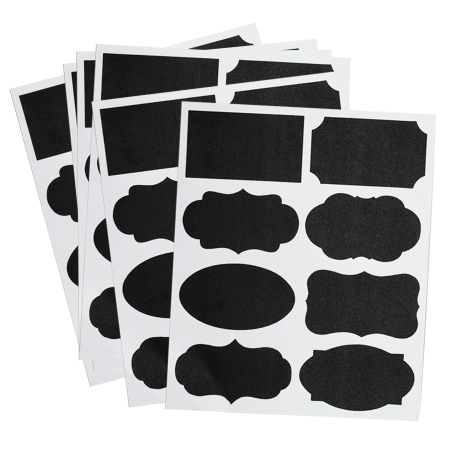 Have fun with your décor – create colorful nametags, reusable place cards, decorative tags for buffet tables, and so much more with these label stickers. Each sheet comes with 8 chalkboard stickers, all different in shape. The adhesive backing makes them easy to attach to other items, and the surface takes both regular chalk or chalk markers.