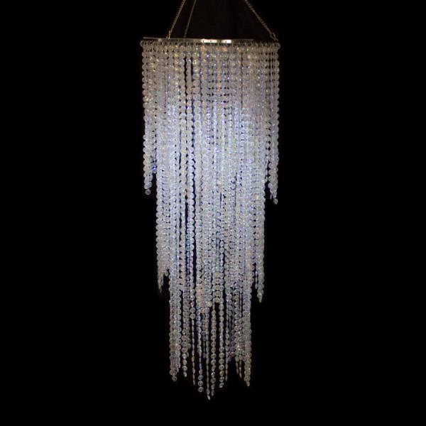 CRYSTAL IRIDESCENT DIAMOND CUT CHANDELIER LONG THREE LAYERED WITH LED