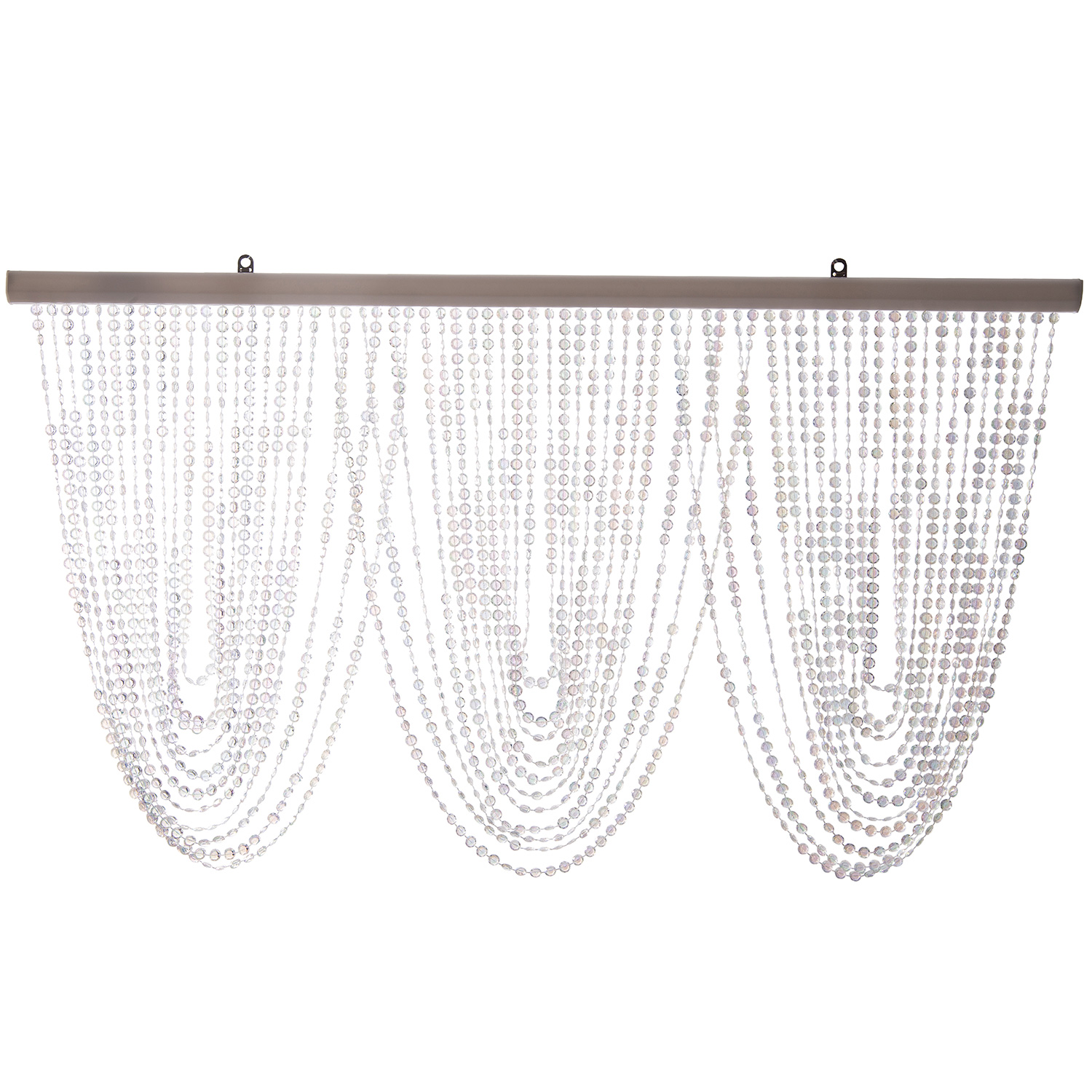 Make a gorgeous statement with these iridescent crystal diamond swag pattern curtains. This classic design is made even more elegant with our quality diamond-cut crystal beads that form into three beautiful swoops. The hoops on the top of the bar allow you to easily hang in a backdrop, over a valence, and more.