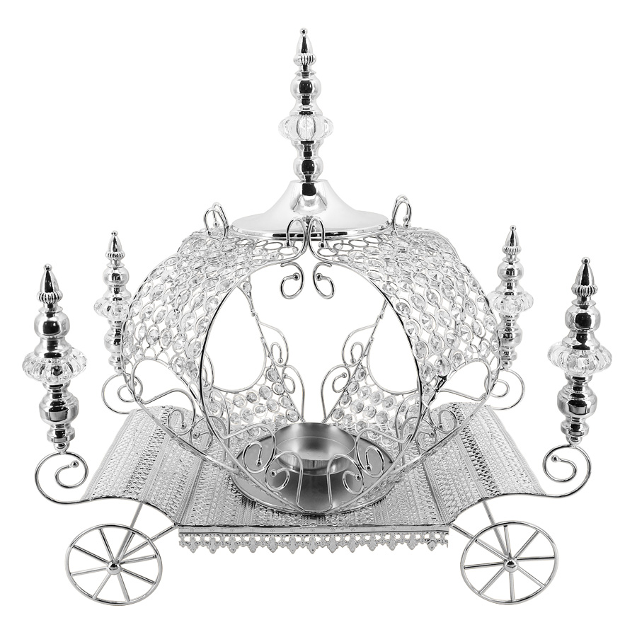 Decostar™ Crystal Pumpkin Carriage Candle Holder 23½" - Silver[PFO-74-0194SV]