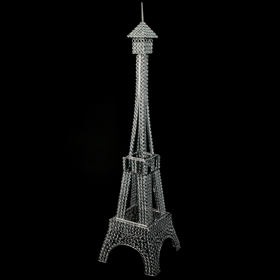 Planning an event inspired by world travel, international cuisine, or one inspired by Parisian décor – if so, the addition of our crystal tower, similar to the famous Eifel tower, will add to your overall decor.  Clear crystals, each surrounded by a silver wire ring, are carefully strung together to create this freestanding centerpiece.