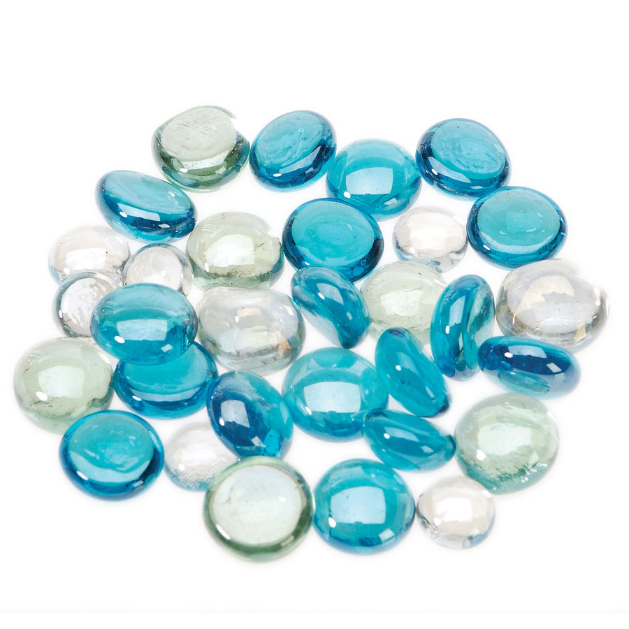Simple yet beautiful, this mix of colored glass marbles provides you with an easy decorative solution. The marbles come in a mix of clear, white and turquoise and are different shapes and sizes for more visual interest. Great for filling containers, adding to candle décor, or for gluing to other decorative elements, these marbles are a must have for your event tool kit.