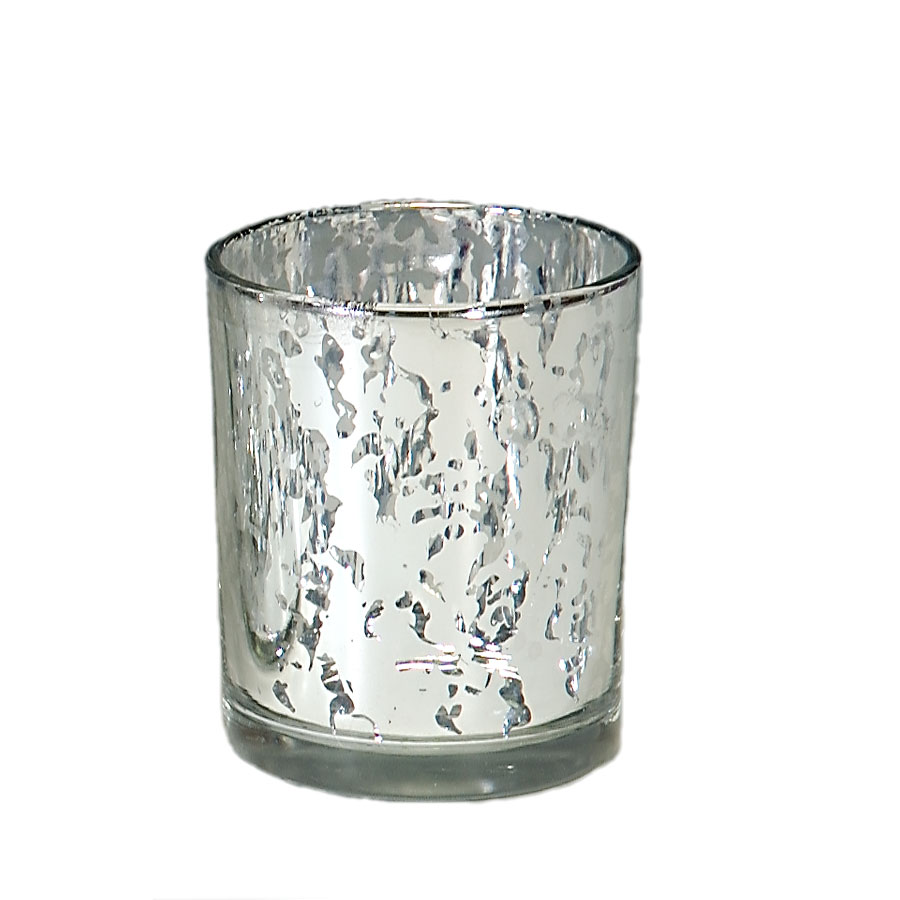 These 3 ¼” rounded candle holders take on a completely different look when lined with metallic paint. Our silver mercury paint finish lets some candle light escape in the gaps of the paint, but most of it gives off a soft glow as it is diffused by the paint. Just the right size for traditional votives, tealights also fit easily into these silver mercury glass candle holders.