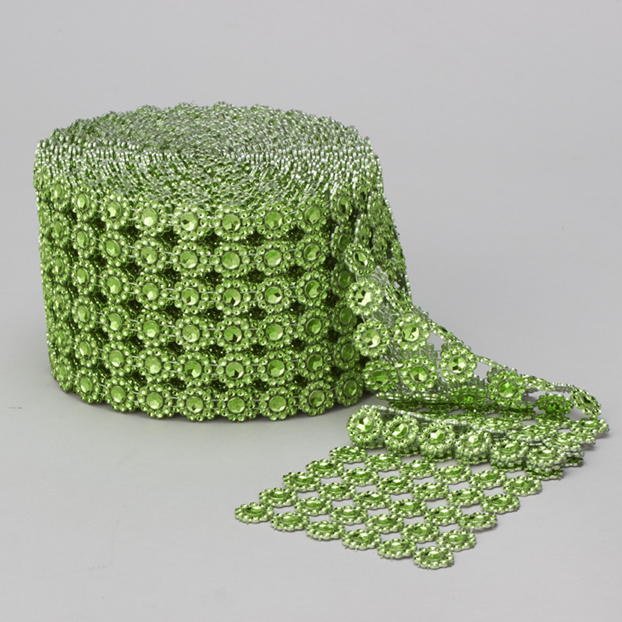 Diamonds are a girl’s best friend – if that is true then make her day by adding diamonds throughout the event space. With this diamond mesh, adding diamonds to simple décor, vases, fabric, and more has never been easier. These dbright green diamonds are arranged in little flowers – a larger diamond surrounded by 10 smaller pieces. The mesh is flexible, forming to most shapes, and a little glue is all you need to create fun, beautiful, coordinated décor.