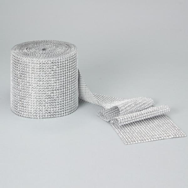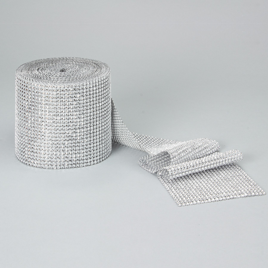 Rows of tiny, colored, faceted indentations give the appearance of silver rhinestones sparkling from the fabric of this flexible mesh. Quickly becoming a decorative favorite due to its variety of uses and color choices, this mesh is easily added to any décor. Use to create twinkling bows or drapery ties, or with a little glue it provides color accents to floral arrangements or other decorative elements. And that little bit of sparkle will take your event to a whole new level. Choose from an assortment of colors to match your scheme