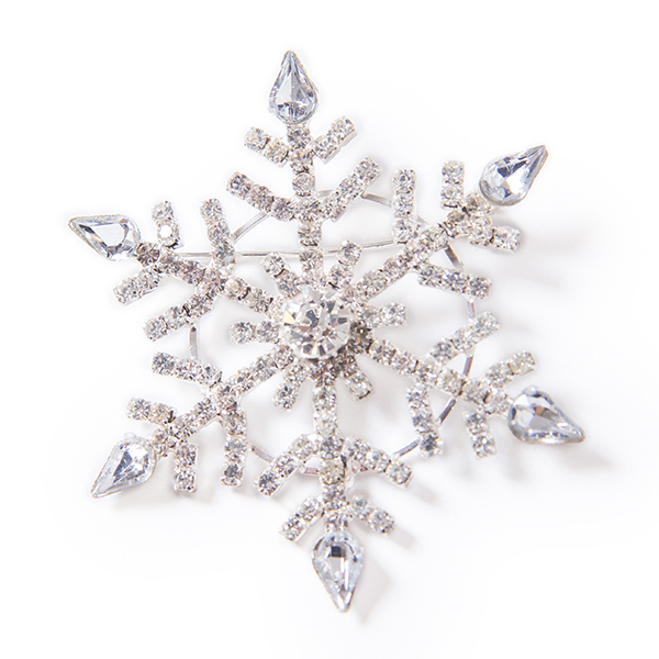 Our diamond snowflake is the perfect decorative brooch for your winter holiday decorations. The delicate six points have tiny branches studded with diamonds to make this silver snowflake sparkle and shine just like a real snowflake. You can use this silver brooch to decorate curtains, tablecloths, chair covers, and more.